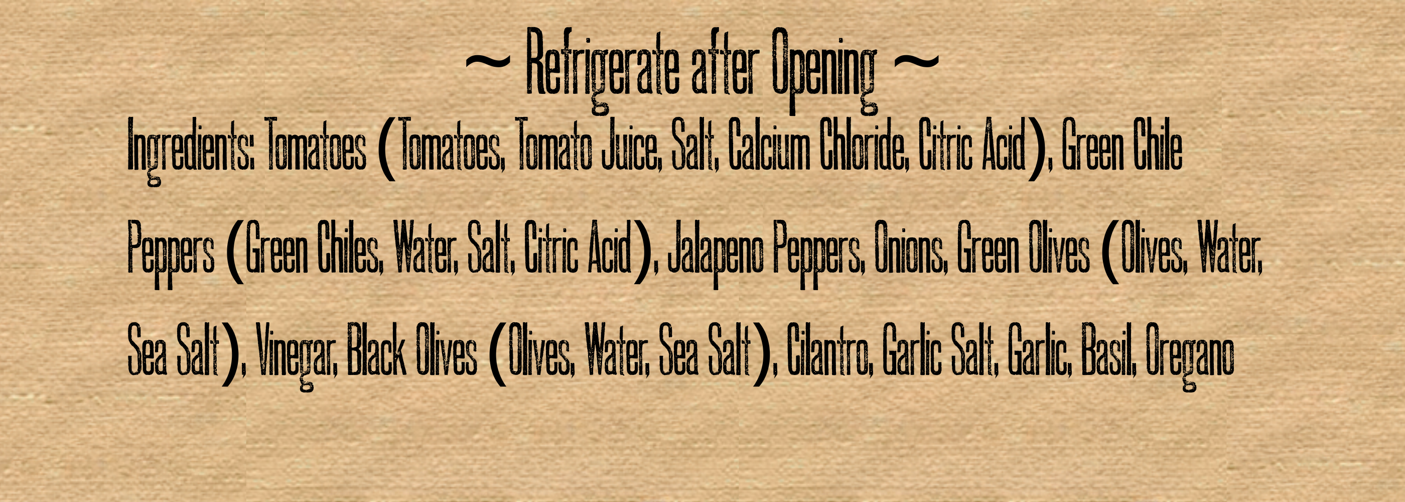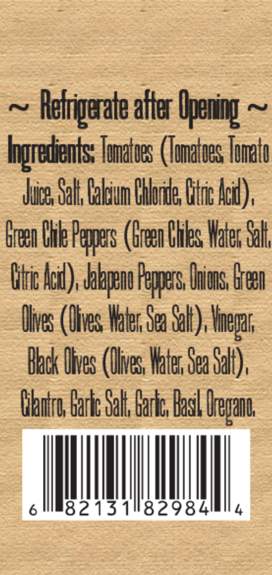 A tribute to our heritage, this salsa is a medley of flavors that we were raised on; lush tomatoes, sweet onion, zesty peppers, fresh garlic, savory olives and all the usual suspects when it comes to seasoning. It is like a salsa married to a tapenade. This is our favorite salsa to cook with; use over your favorite pasta, top your favorite protein, dress your bruschetta or mix into a salad. The possibilities are endless.